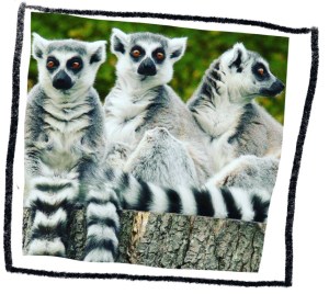 These lovely ring-tailed lemurs live at Jersey Zoo. They are one of many lemur species that live on the island of Madagascar – do they remind you of King Julian from the animated movie?