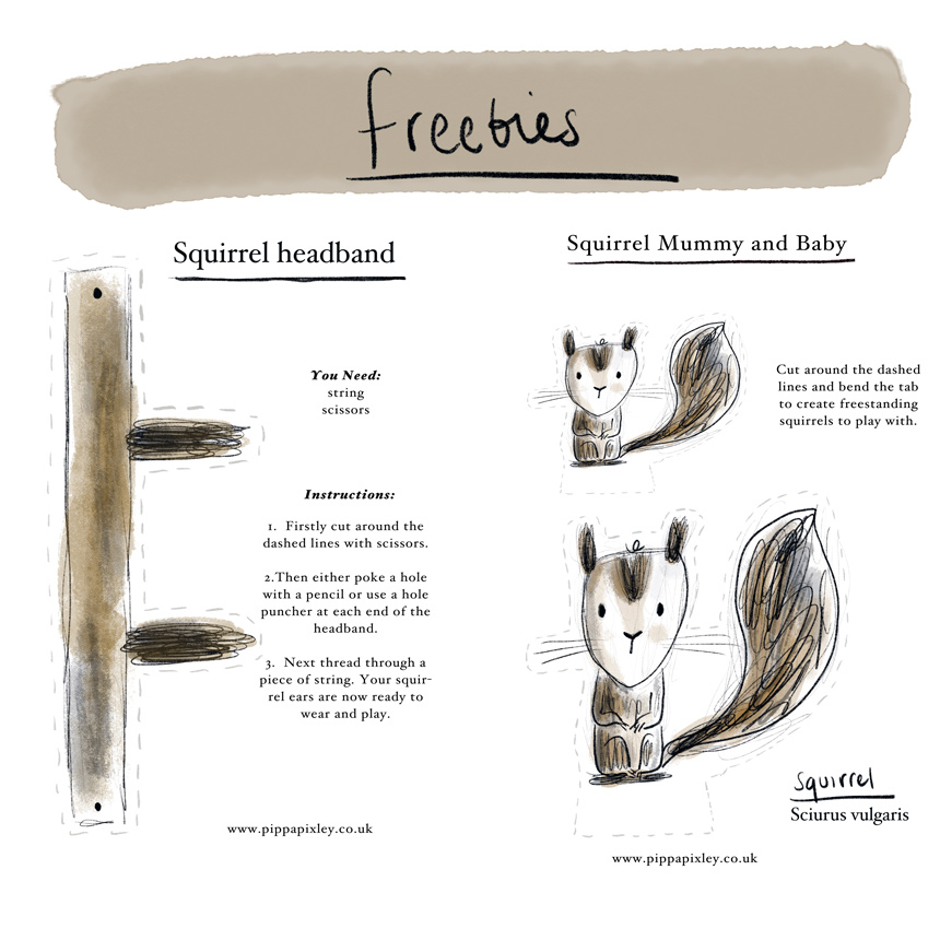 Click these links to download printable pdf worksheets for the squirrel headband and the squirrel mummy and baby cutout characters.