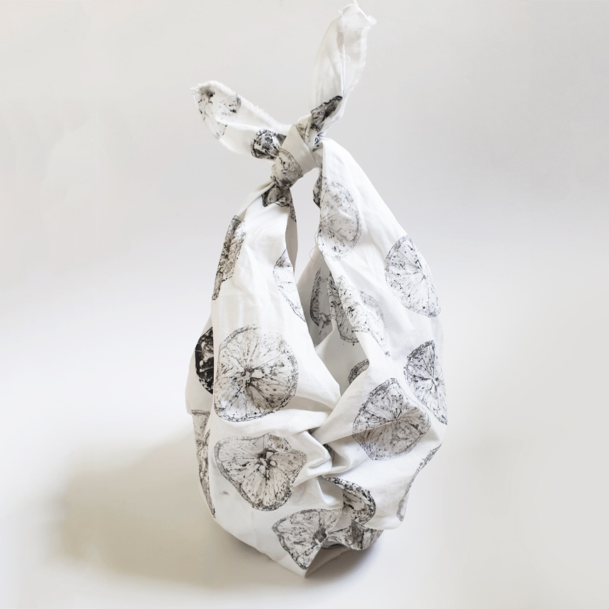 Handprinted Organic Lemon Furoshiki Bag Medium