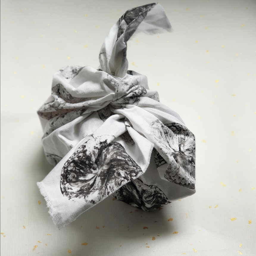 The set of three furoshiki wraps are handprinted using organic lemons and are ideal for wrapping picnic items or gifts, or can be knotted to form a cute purse or pouch. The furoshiki bag is a really unique way to carry your shopping or your seaside essentials.