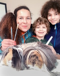 Our Abyssinian hogs are called Cookie & Caramel. They love to be hand-fed pieces of fruit and veg after a shampoo and blow-dry spa session!