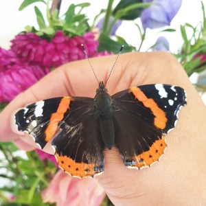 This stunning red admiral butterfly fluttered in through my open window today. It was happy to land on my hand for a little rest!