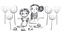 Join Pippa and the boys as they use natural materials to draw a pebble from the shore...